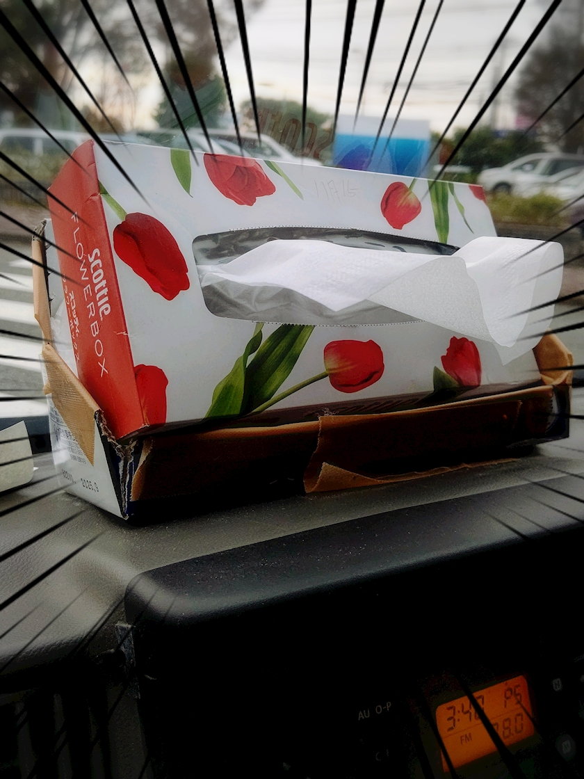 ダッシュボードにティッシュ