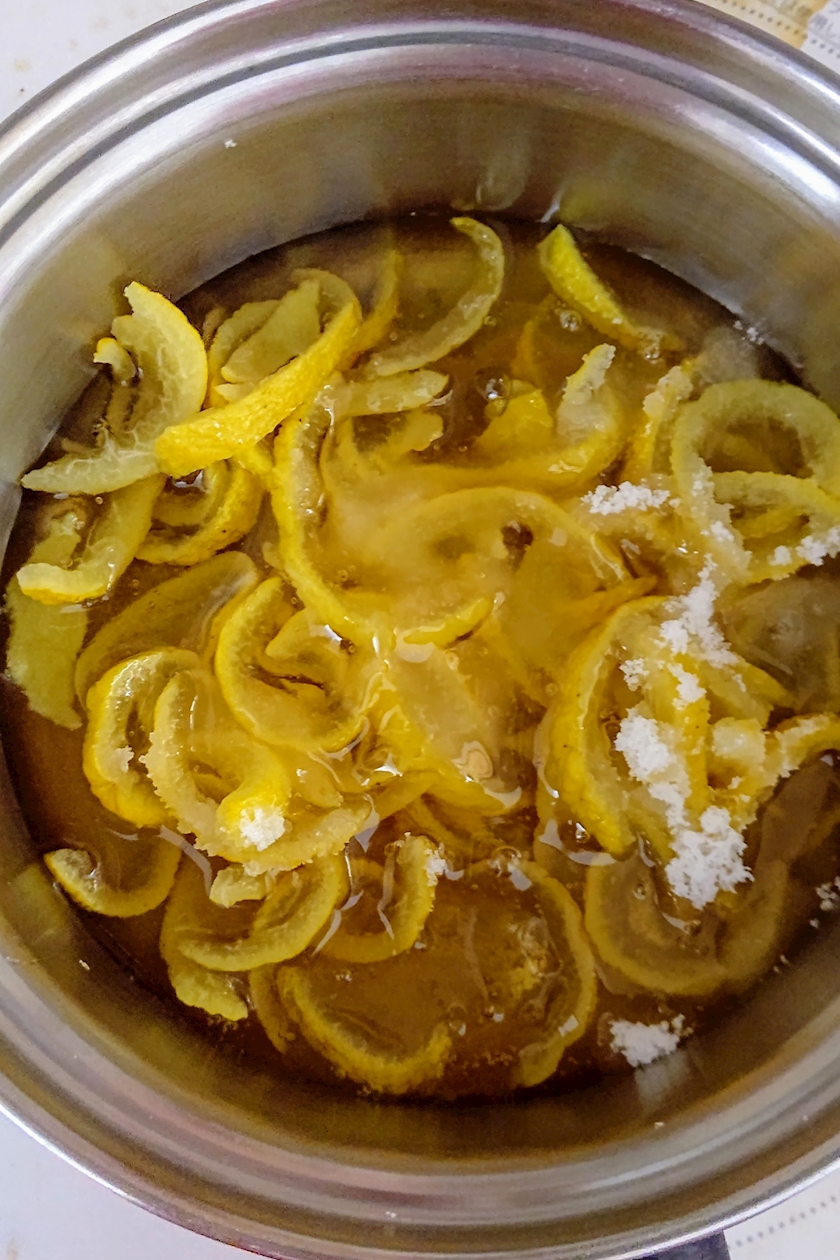 (半切りの柚子は他の物を作るので一緒に煮てます)