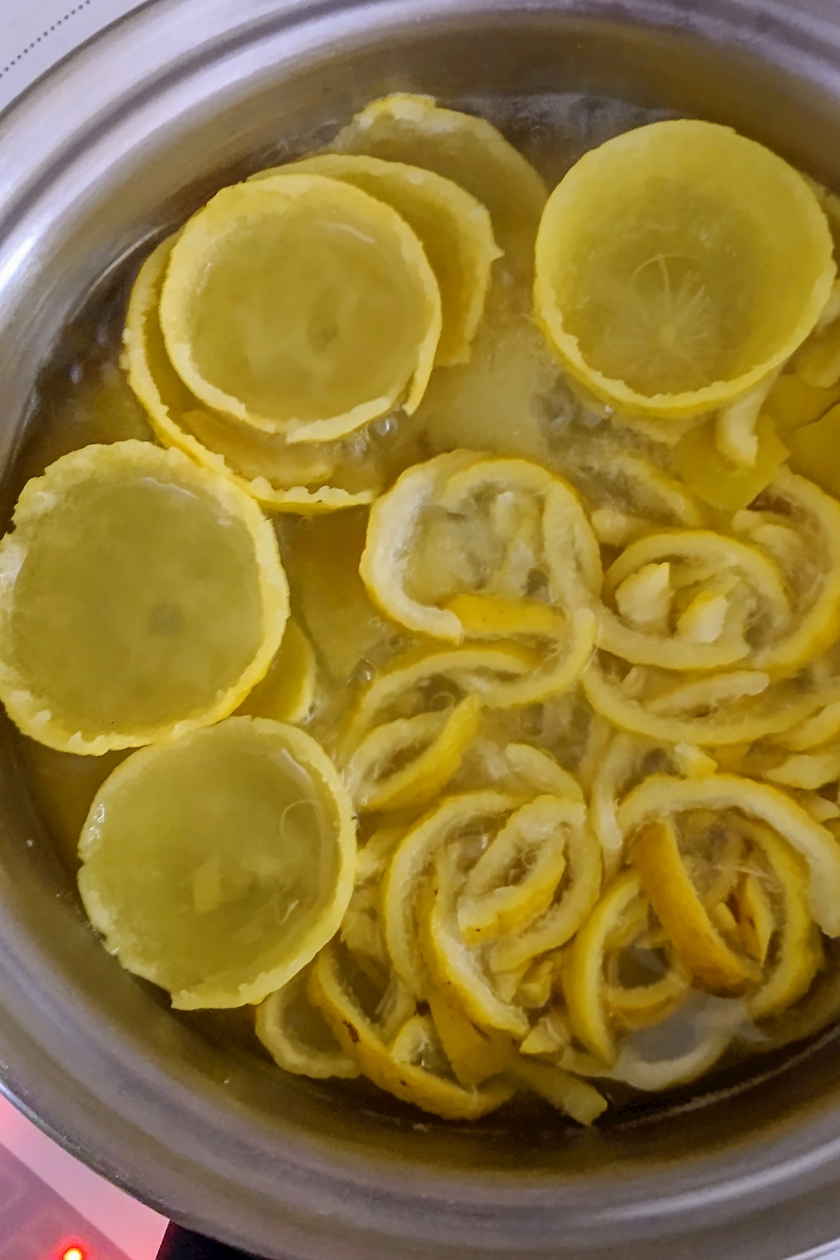 ④鍋に柚子の皮と浸る位の水を入れて中火で沸騰したらこぼし