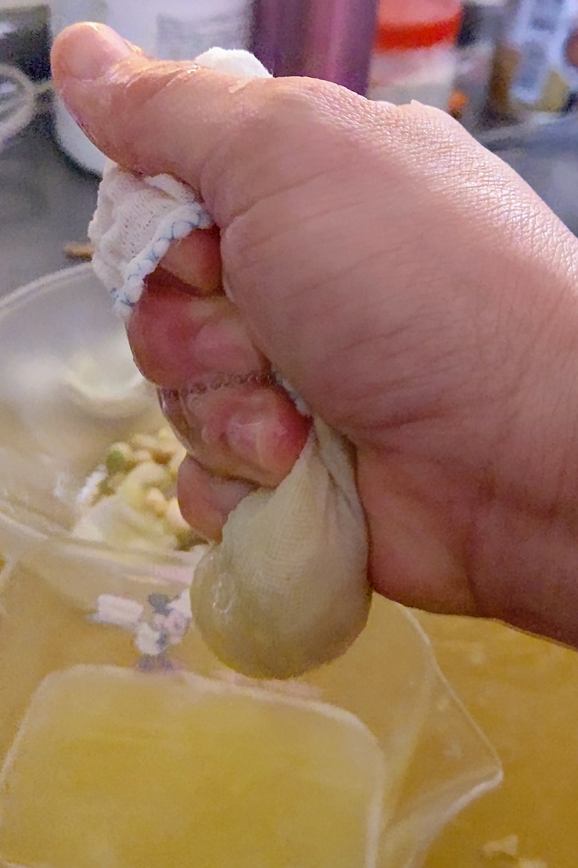 ②サラシなどで柚子の実を搾り果汁を出す