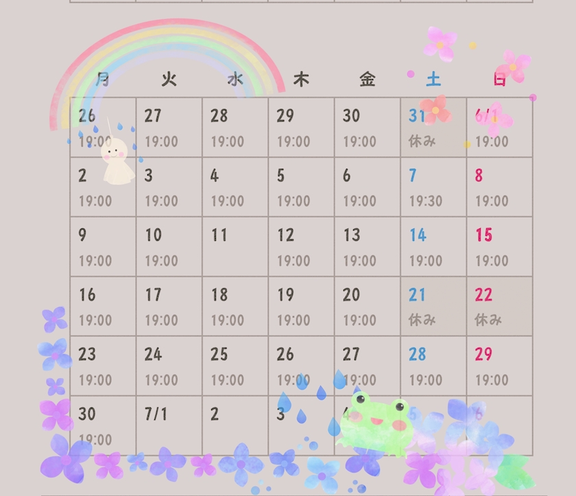🐸6月下期出勤予定☔️