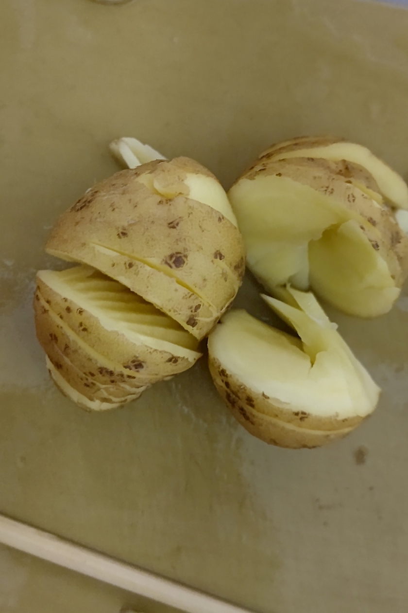 ④じゃが芋を縦に引っ張って広げる