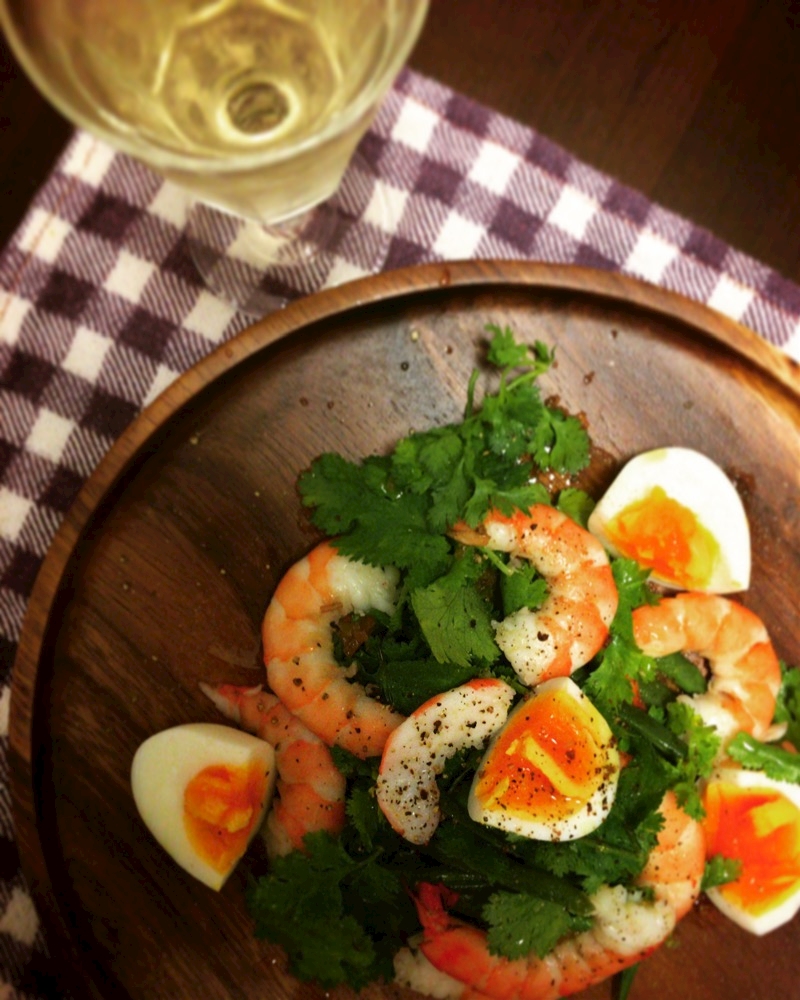パクチーをちぎった自分の指が