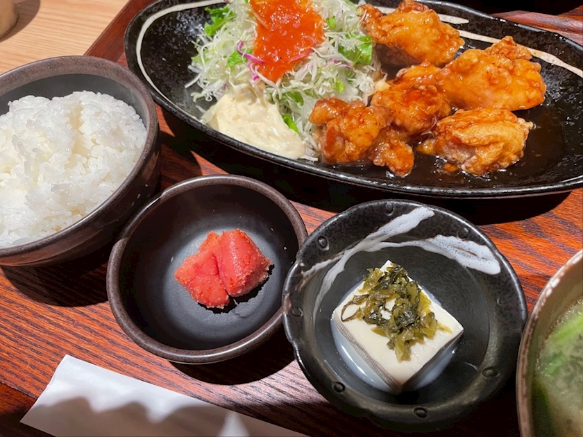 鶏からの甘酢餡かけ定食‼️