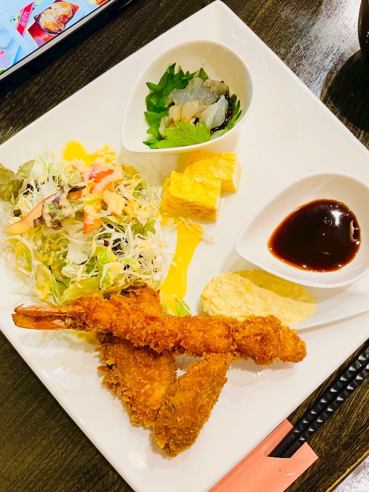 お昼に食べたミックスフライ定食