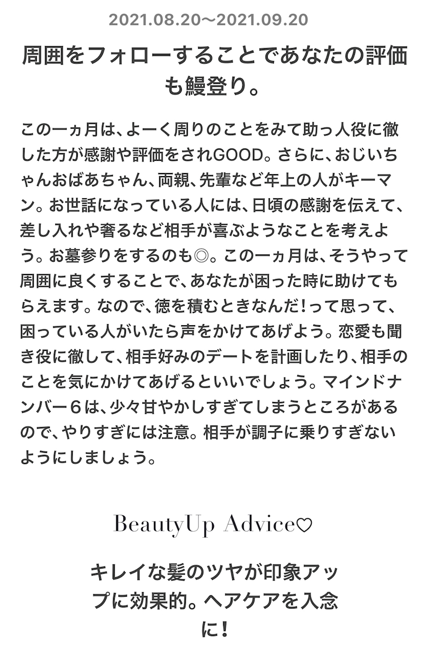 8/20〜9/20の運勢が占えます