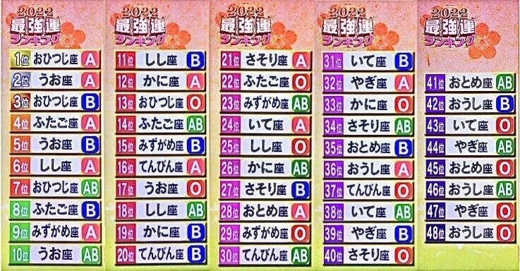 2022年最強運ランキング