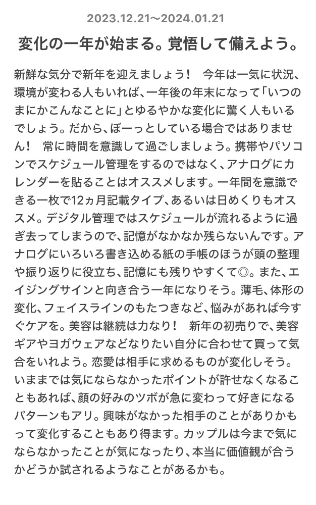 12/20〜1/21の運勢が占えます