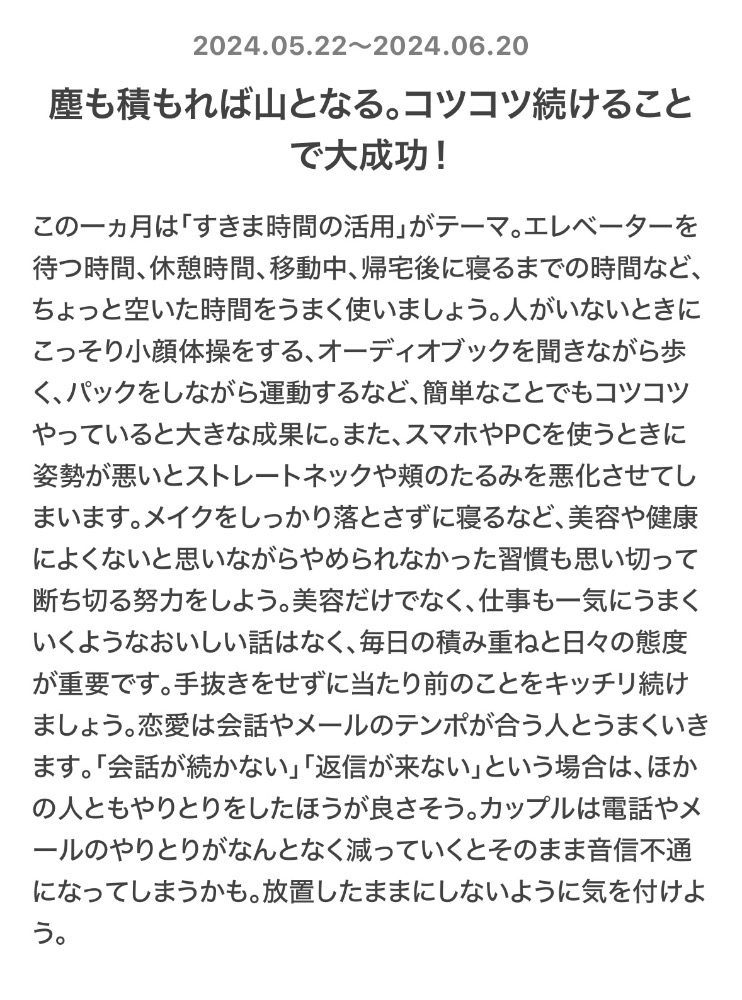 5/22〜6/20の運勢が占えます