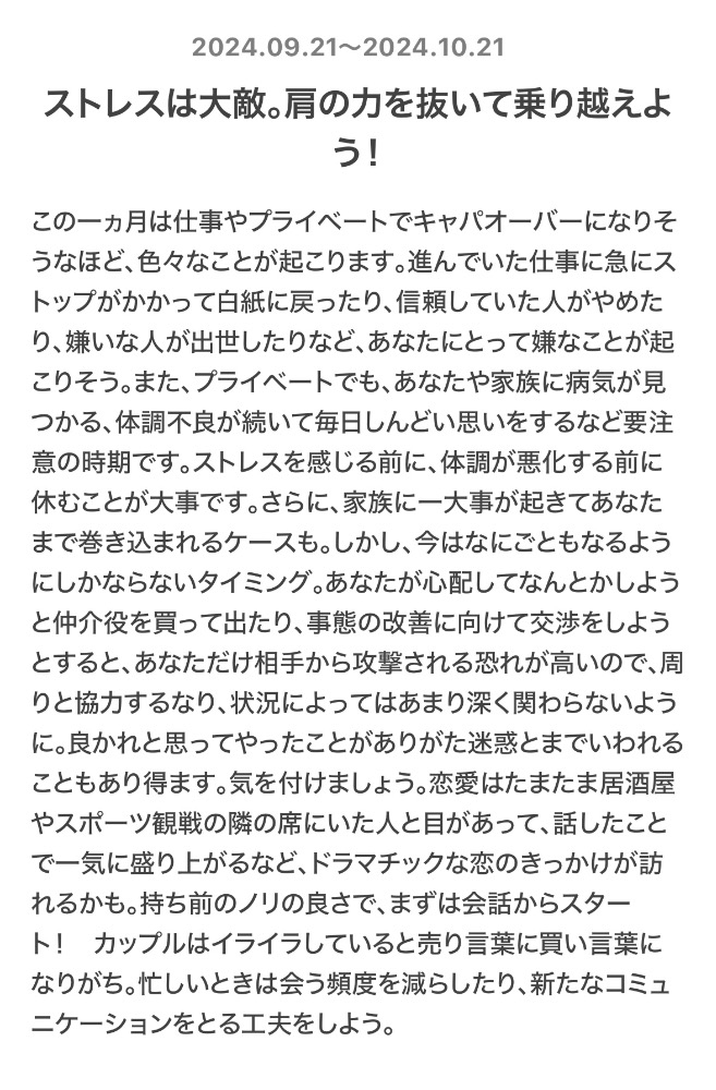9/21〜10/21の運勢が占えます