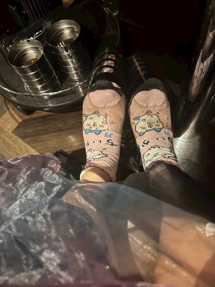 こっそりドレスの下に靴下履いてみる。