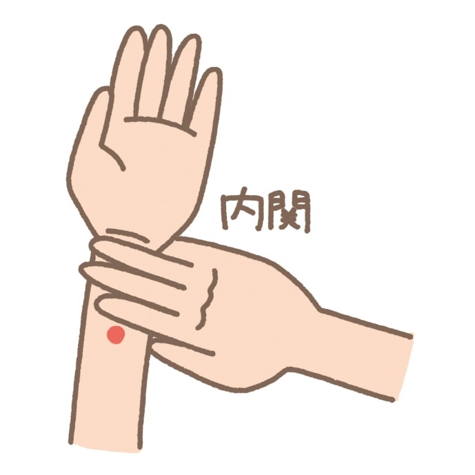 自律神経の乱れに効くのが、手首にある「内関」のツボです。内関はもともと、乗り物酔いや自律神経の乱れに効くツボ。ふらつきやめまいなどの症状が現れそうなときに刺激すると、症状が収まります。