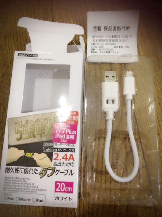 保証書付きのケーブル
