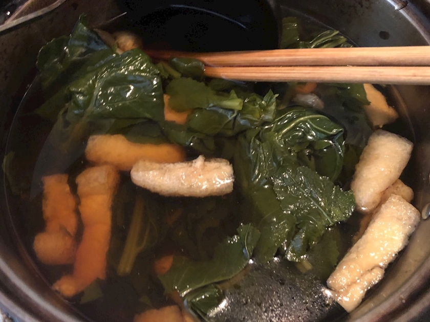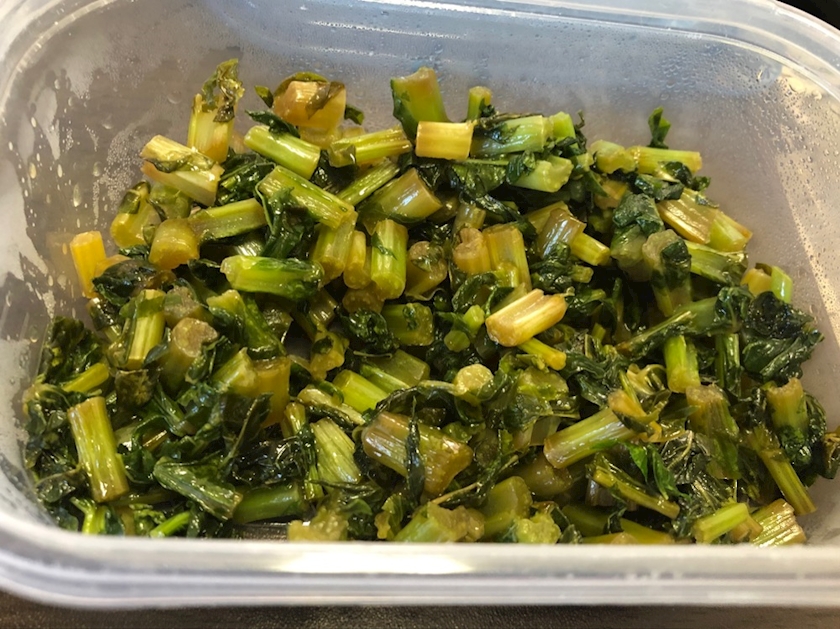 先日いったスーパーで大根菜がタダ同然の値段で売ってたので2束買って、