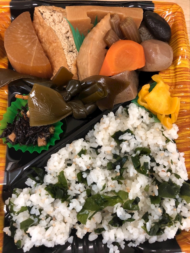 最終日で持って帰る物多いからお弁当作ってこなかったのでぇ、期間限定で復活したワンコイン弁当買ったぉ💕いろんな種類あるけどぉ、この煮物弁当しか買わなぃぉ💕とりあえず食べ納めだぉねぇ〜🍱