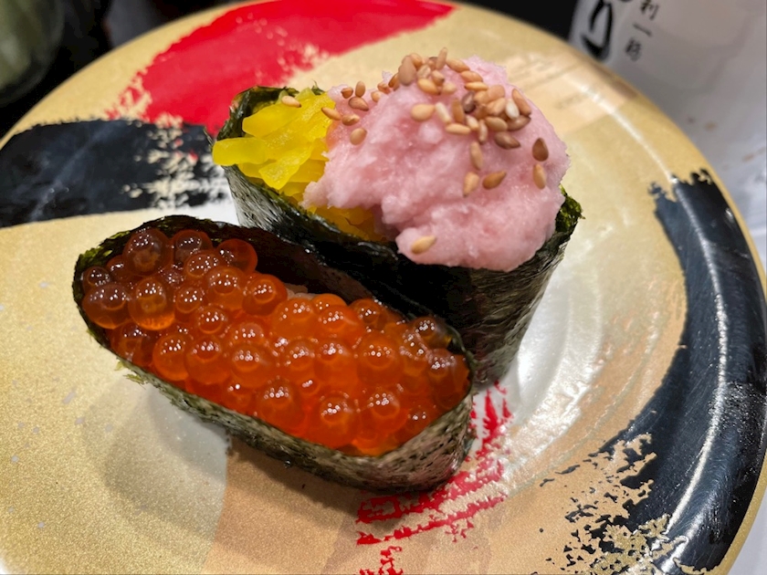 載せる写真がなぃので先日いただぃたお寿司さん🍣間違いのないいくらと中落ち軍艦たくあん添えのハーフハーフ。