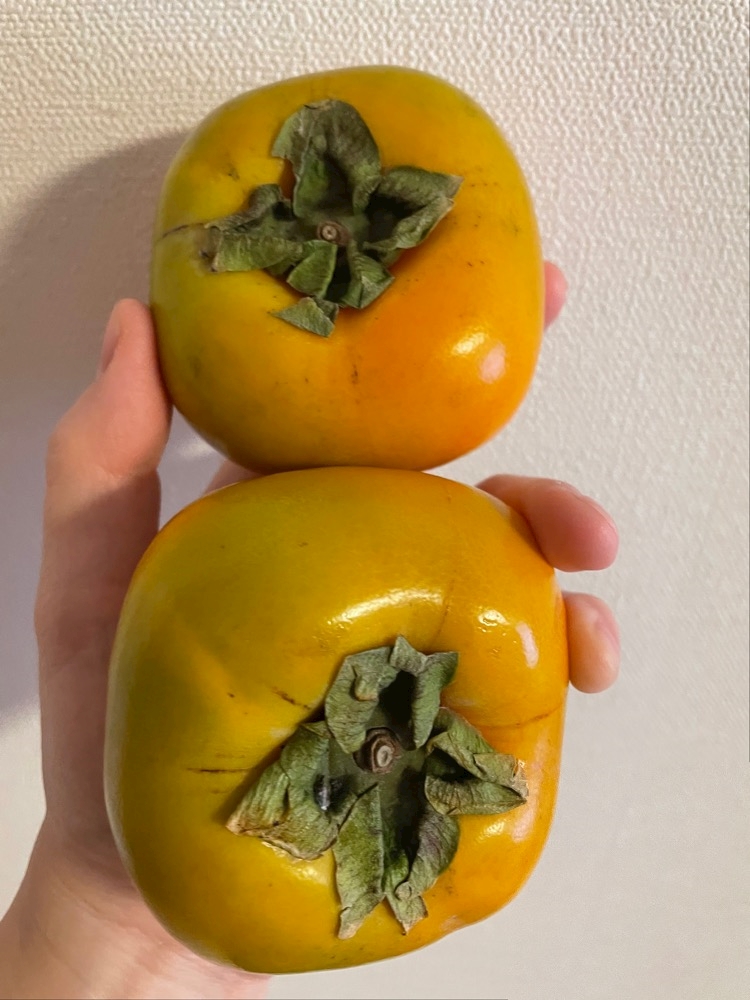 柿💕わ〜い✨今年の初物✨まだちょいしっかりめなので、もうちょい追熟させてからいただきまふ❣️