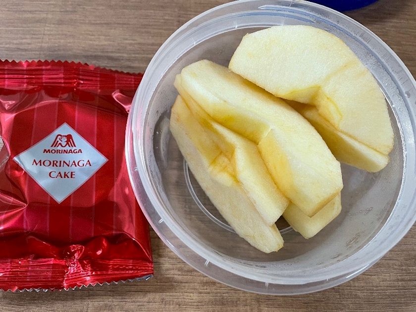 今日のおやつ。りんご🍎といちごチョコパイ🍓