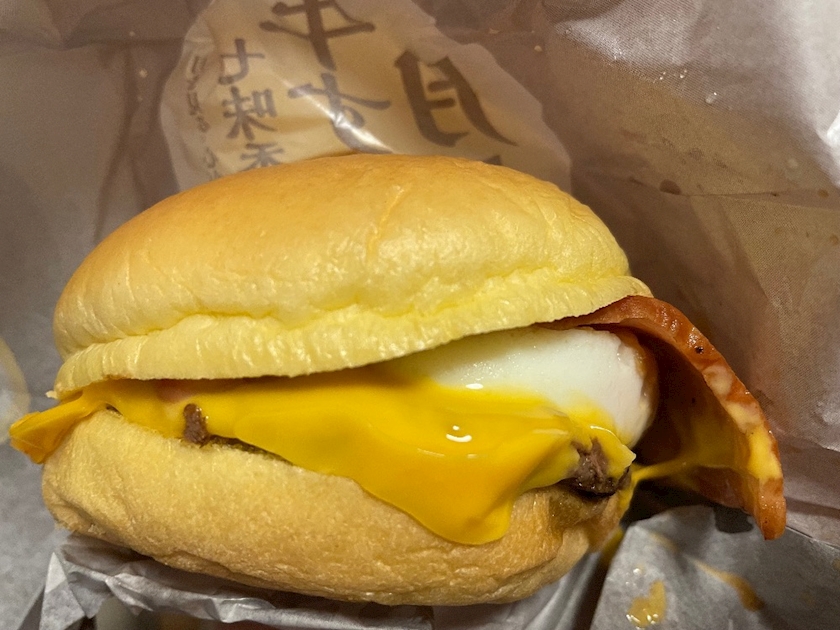 普通の月見バーガー&チーズ月見はあっさり系なんだけど牛すきのほうは程よいこってり感がちょうど良いバランスでうま〜でしたん🥰