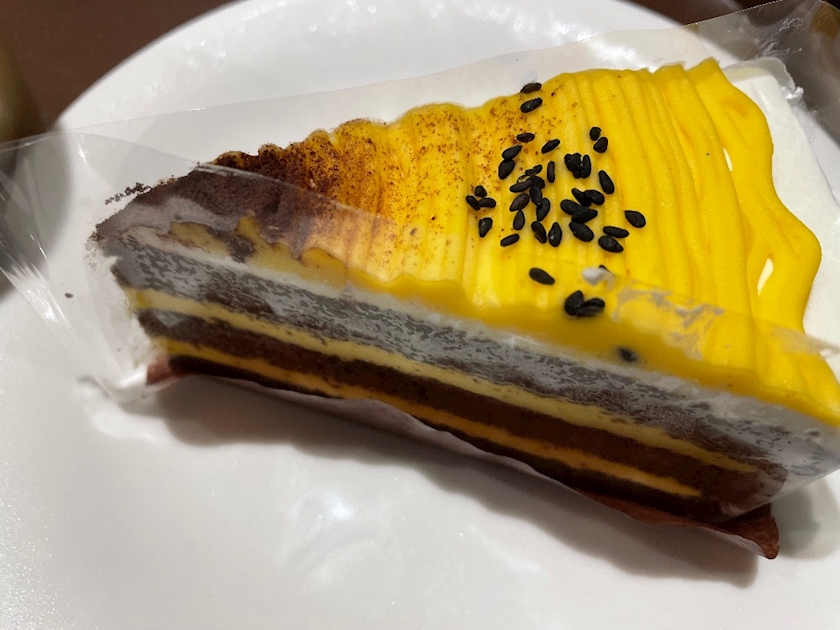 先日よばれたさつまいもケーキ🍰つ〜かどえらい大雨の中にカッパきて中継させるのいい加減やめない❓外の状況なんかある程度カメラ設置して撮影しとけばわかるから。