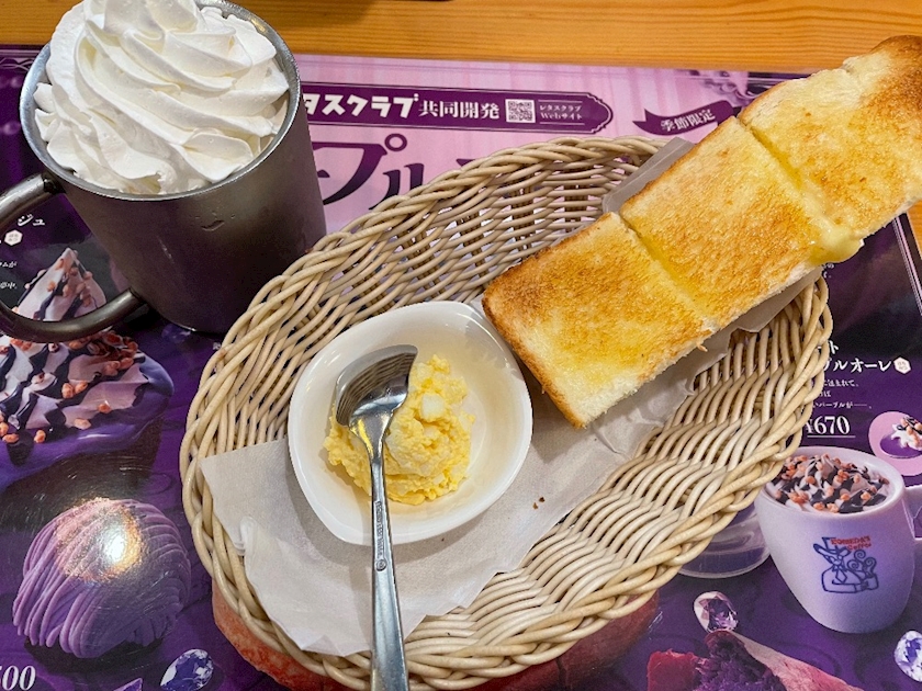 たまごペースト一択🥚モーニング来たの久しぶり❗️ついトーストにしたけど知らない間にパンの種類増えてたからそっちにしても良かったかな☺️