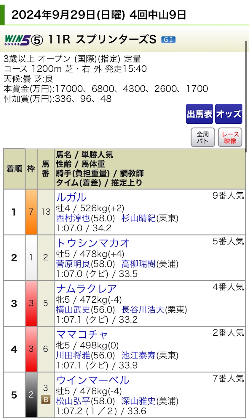 スプリンターズステークス🏇