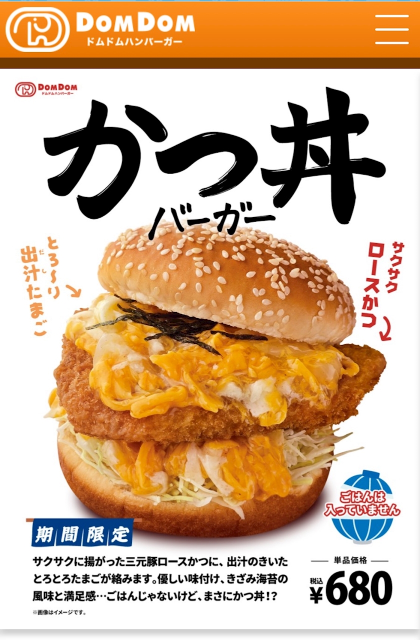 ひれかつバーガーは珍しくないけどカツ丼とは流石ドムドム🐘