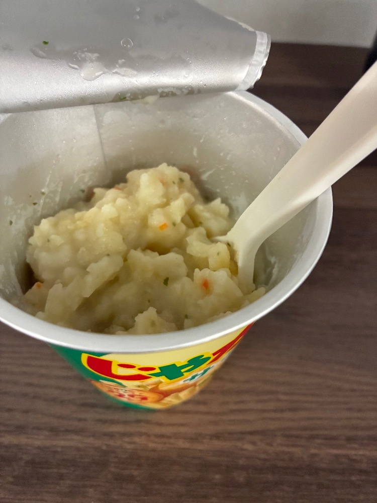 昔流行った、じゃがりこをマッシュポテト風にするやぁつ🥔じゃがりこもちっちゃくなったよねぇ…前はカップヌードルくらいの大きさじゃなかったっけ❓そこまでではないか🙄