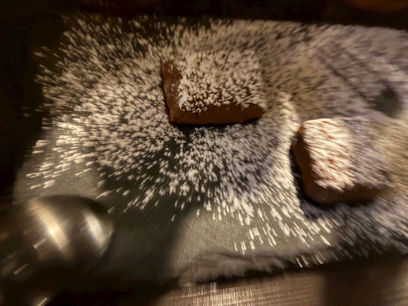 気になったから頼んでみた生チョコ🍫写真躍動感ありすぎぃ〜🌲