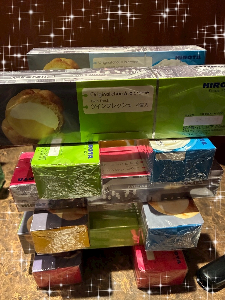 ツインフレッシュ、カスタード、チョコ、チーズクリーム4種類を皆でよばれましたが、りんりんは腹減り出勤したから多分1人で3箱はいっとるな。
