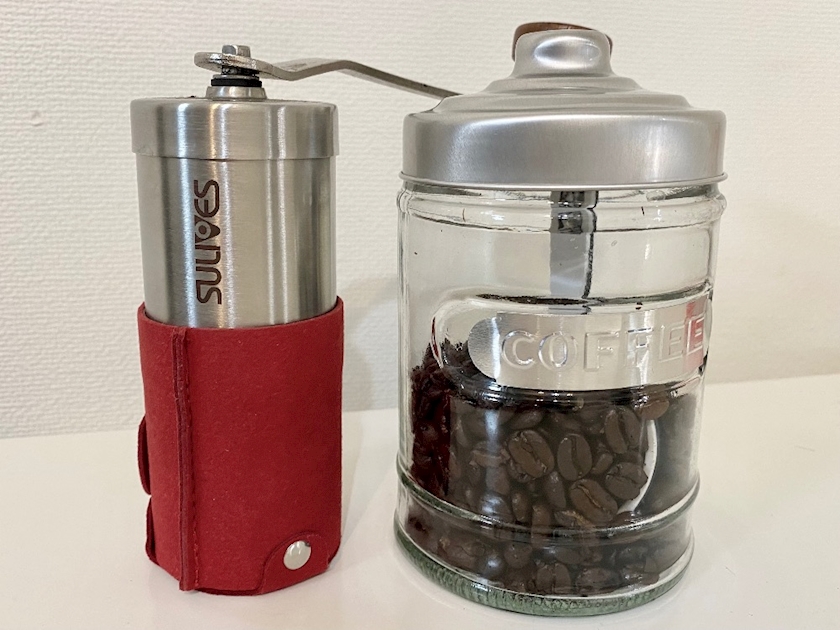豆入れはDAISOですが、左のは1人前の豆を挽くには丁度良いサイズで愛用中🥰