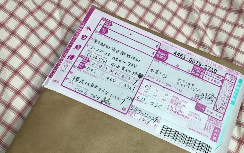宅急便の送り状に