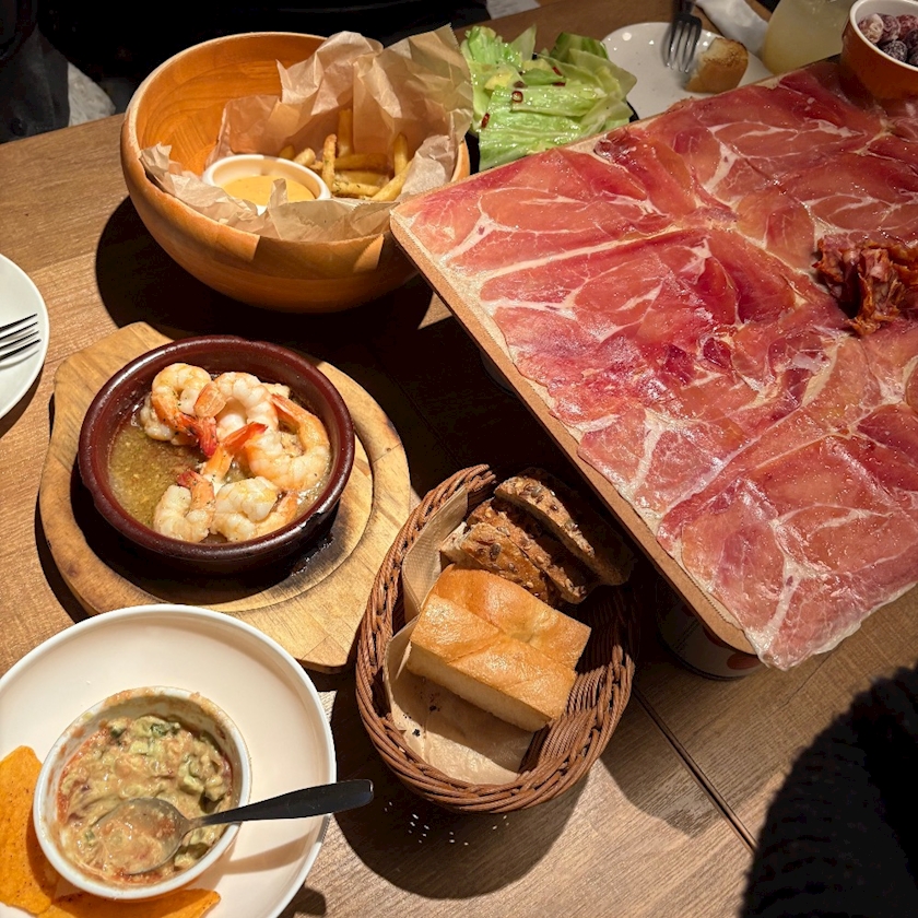 大量の生ハム、アヒージョ