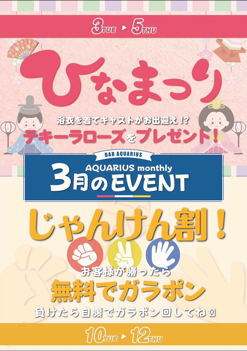 今日からAQUARIUS3月のイベント2つ目‼️じゃんけんイベントですよん〜〜❕❕楽しいげーむや❕❕
