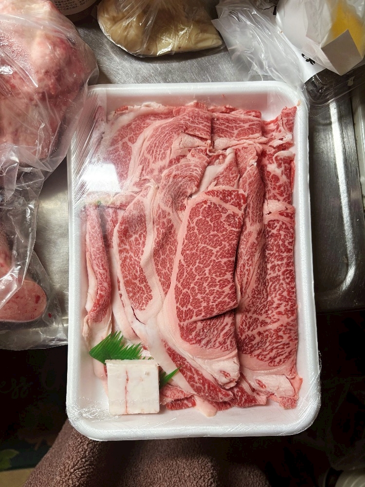 ボーンブロススープ作りたいって言ってたら米沢牛の大腿骨と肉いただいた🎶
