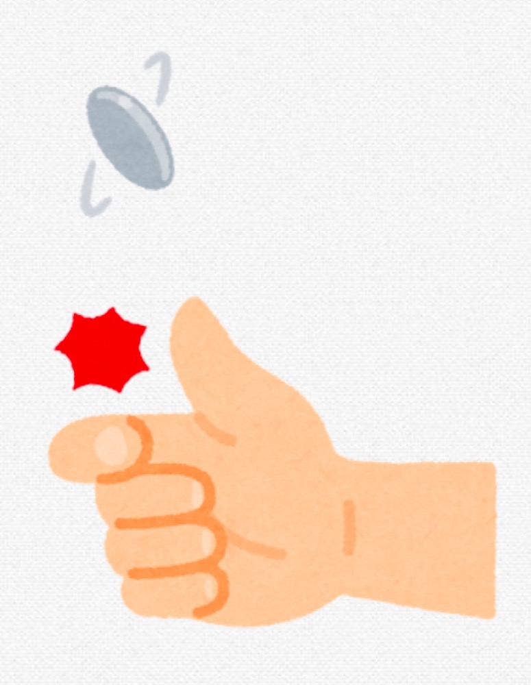見分けの付かない2枚のコインを用いてコイントスして両手で1枚ずつ受け取ります。