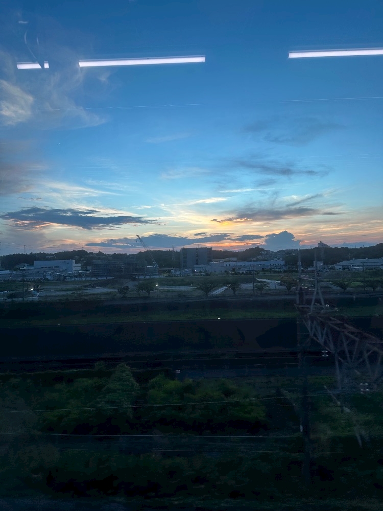 日没前に退散したら、丁度電車に乗ってる時空が綺麗だった😍