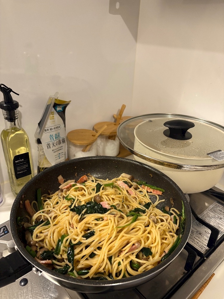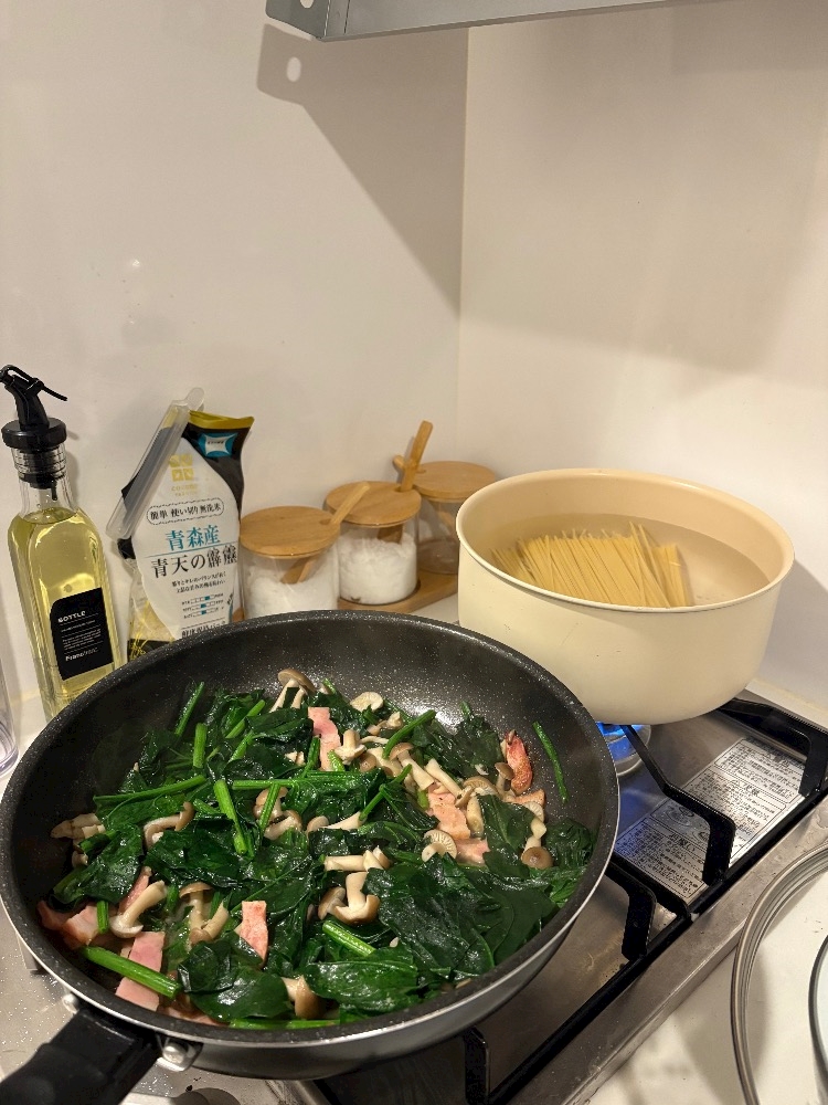 『ベーコンとほうれん草の和風パスタ』