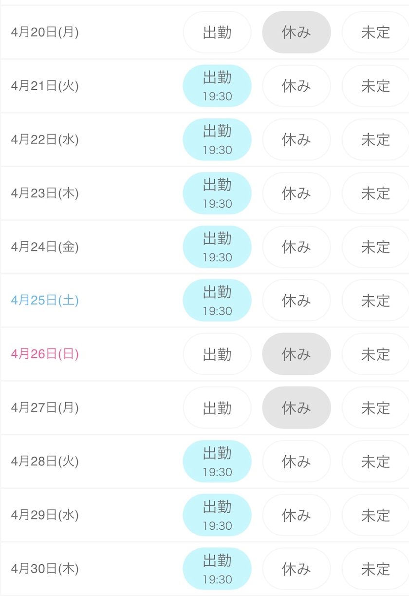 ♡4月は気合いの21日間出勤♡