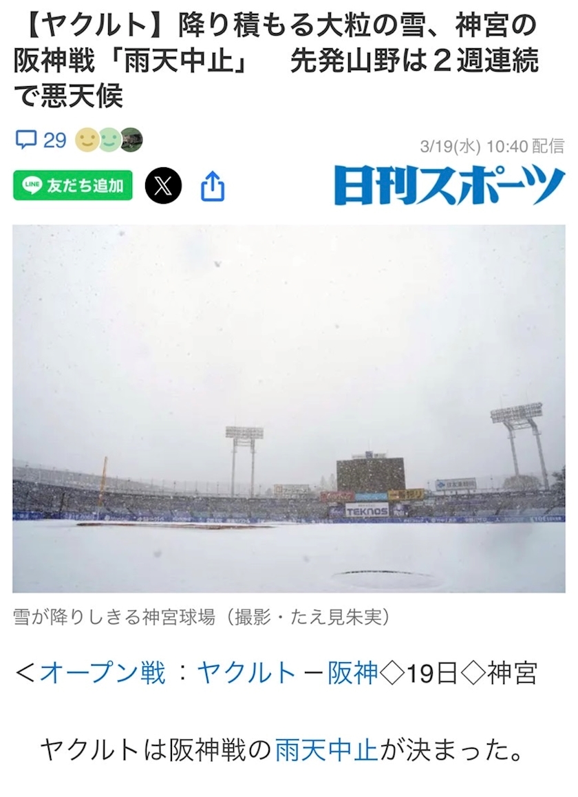 そして案の定の試合前中止❄