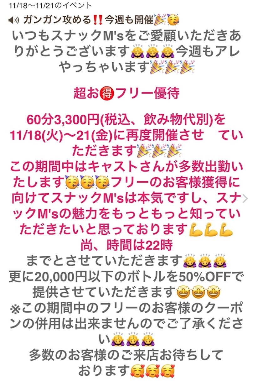 本日フリー優待最終日です✊❤️