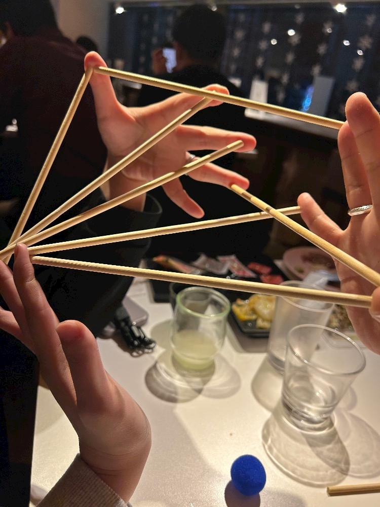 カードの指示に合わせて、指同士を棒でつないで