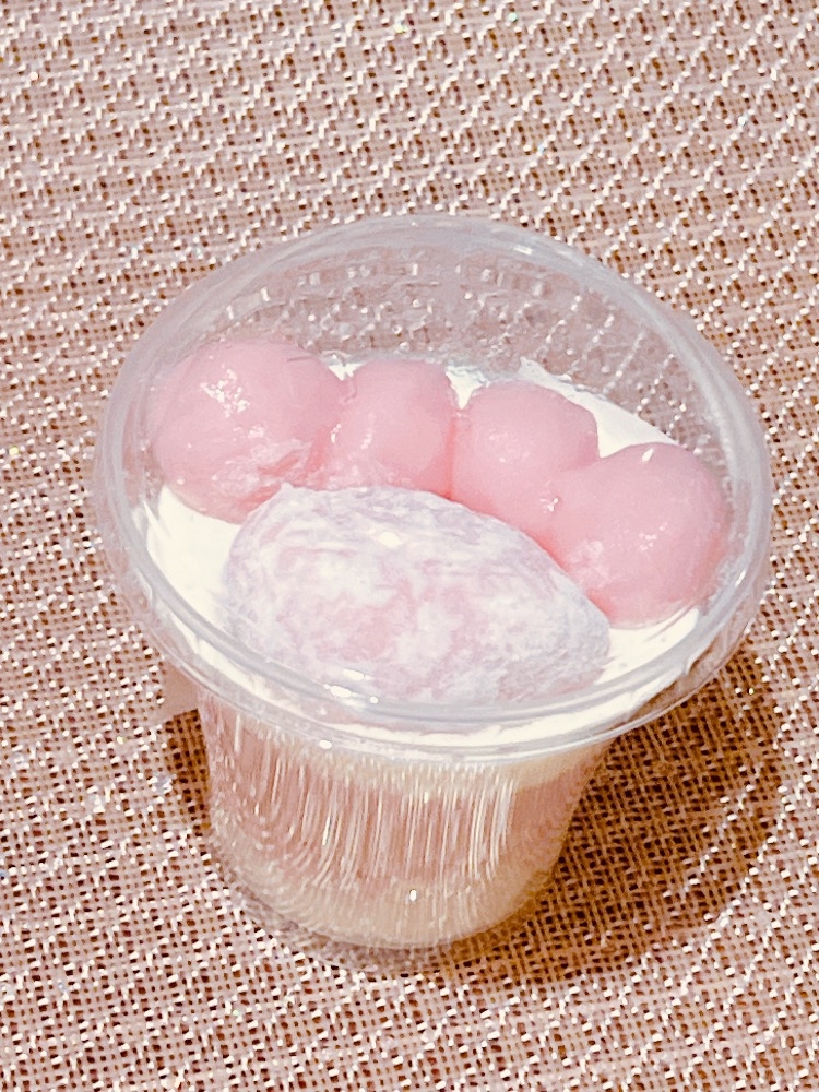 苺ムースにゼリー、お団子、いちご大福で和洋パフェで美味しかったです🎶