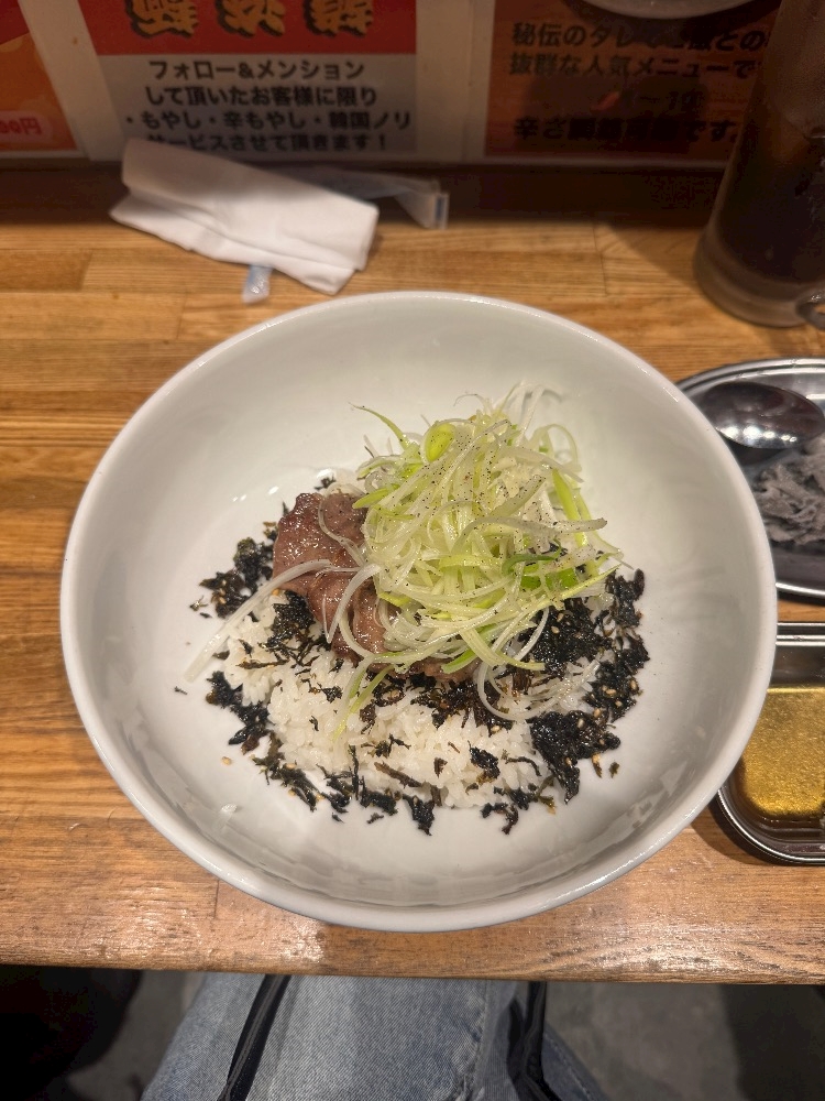 ネギたん丼とせせりニンニク、センマイ刺し