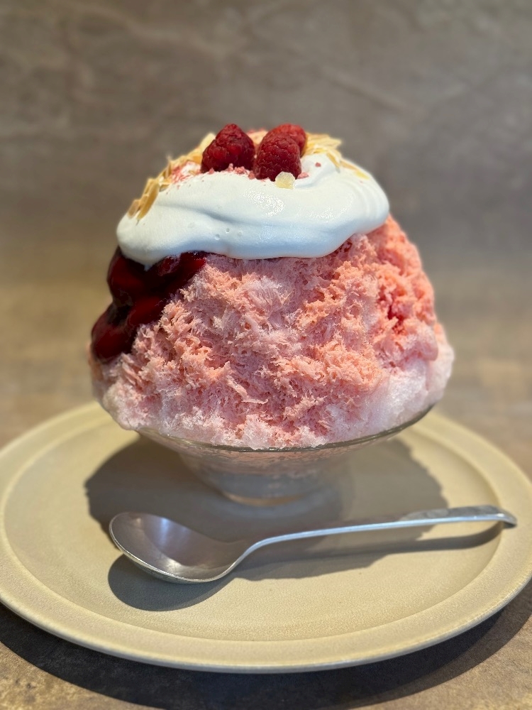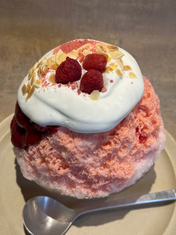 昨日食べた二つ目のかき氷は桜とフランボワーズと杏仁のかき氷🍧