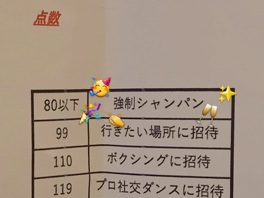 80点以下は強制シャンパン