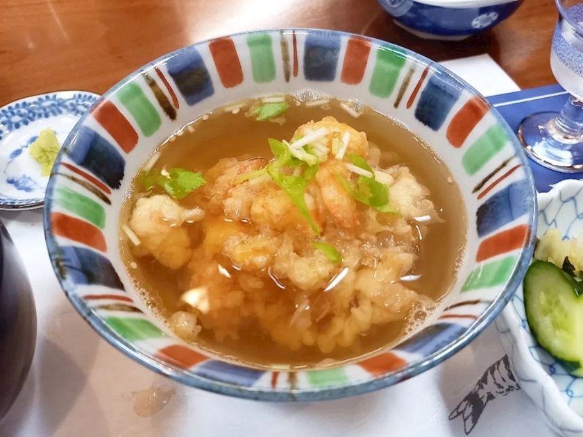 〆に安定の天茶 & お味噌汁も頼んで