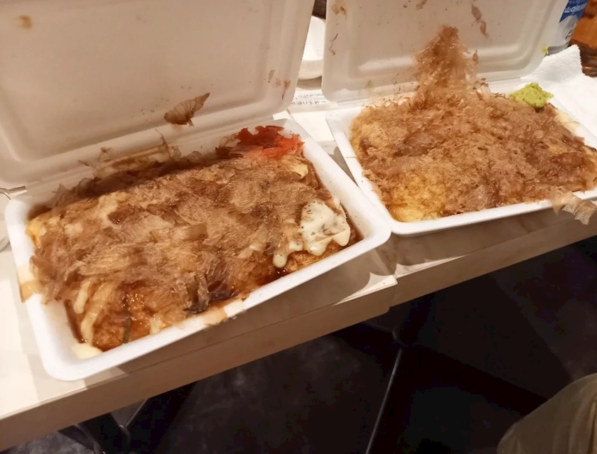 ⬆️たこ焼きも出前してもらった🚲️