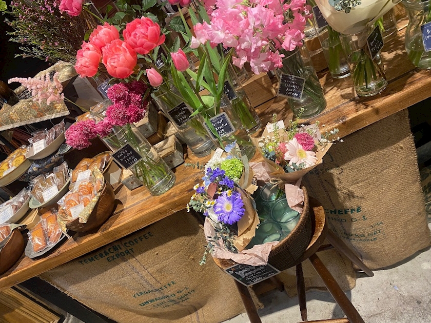 1階は花屋&パン屋で2階がカフェ