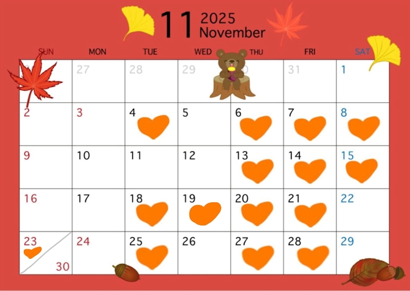 11月の出勤予定載せました!